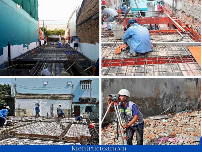 - Gia công cốt thép và đổ bê tông theo các bước tiêu chuẩn.