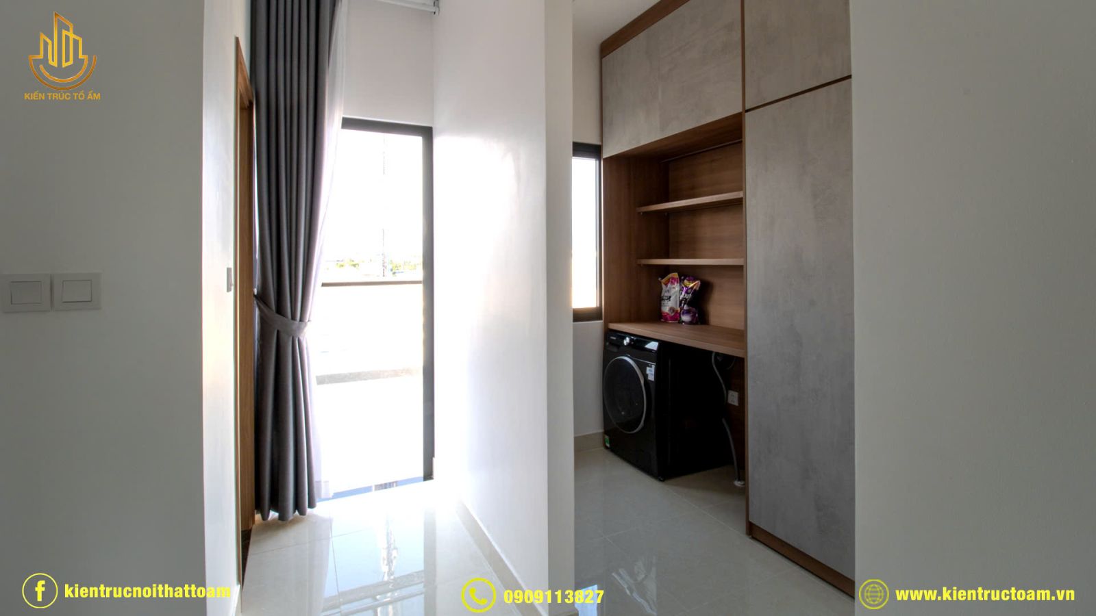 ► Phòng giặt được bố trí tầng trên, vừa tận dụng được khoảng không gian sáng sủa, không khí mát mẻ, trong lành.
